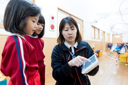 当園では、太陽光発電システムを導入しています。電気や水などのエネルギーを大切に使う意識を、園児とともに学んでいます。