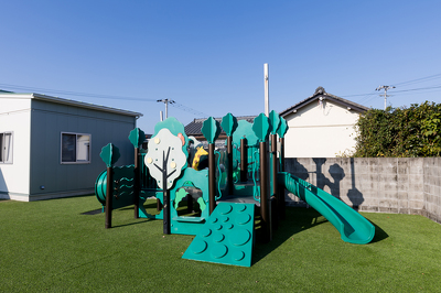 園庭は子どもの安全を第一に考えた構造で、すべてのエリアに先生の目が届くように設計されています。